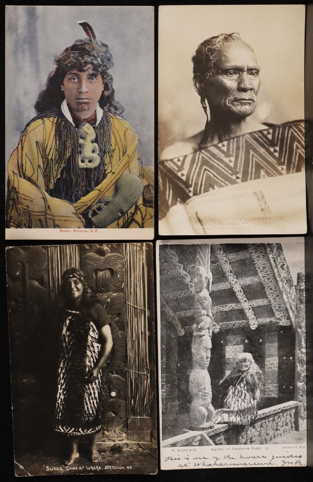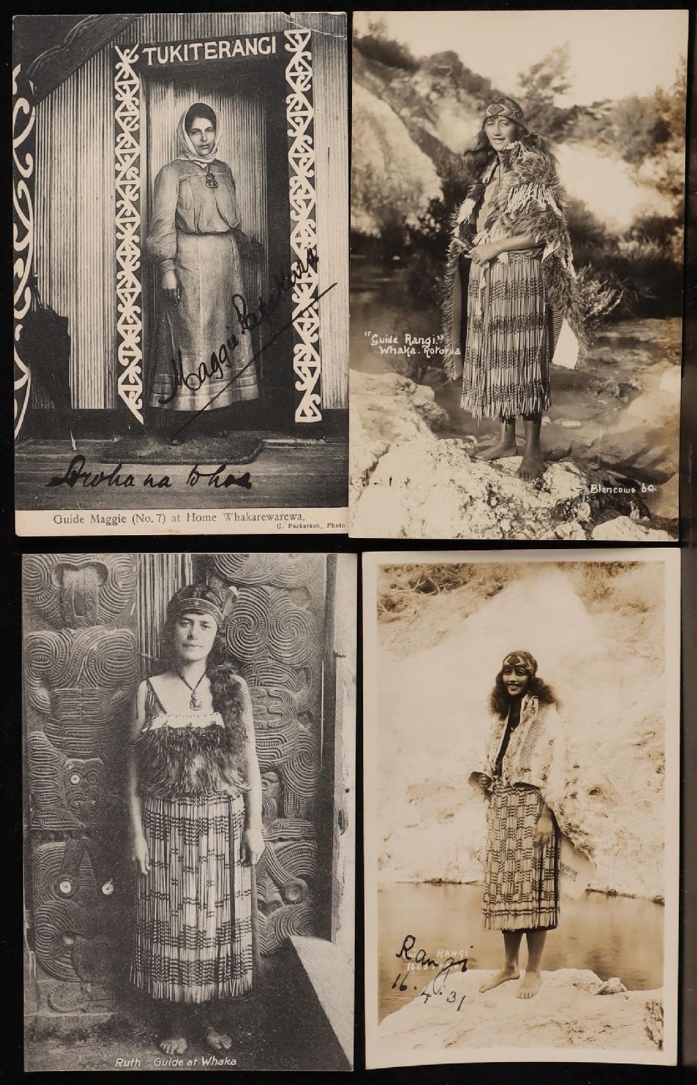 New Zealand & Maori collection (36) with Guides (16) inc Bella (2), Maggie Papakura (6 diff) inc 4 cards Autographed (retail $40-60 ea). Rangi (3) inc Autograph, Susan (2) plus Ruth, Sophia & Lena. Then Village Houses, Maori Elders, Royalty inc Princesses plus others. Mixed UN/U inc real photos, generally F-VF condition. (36)