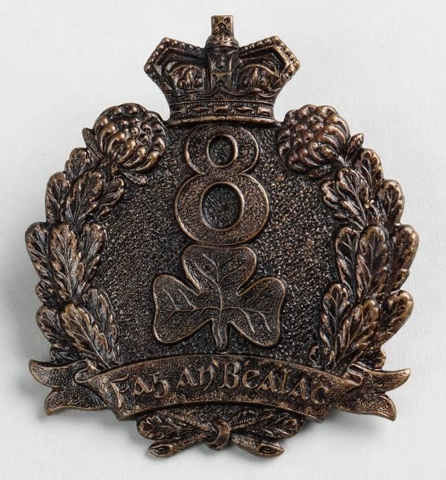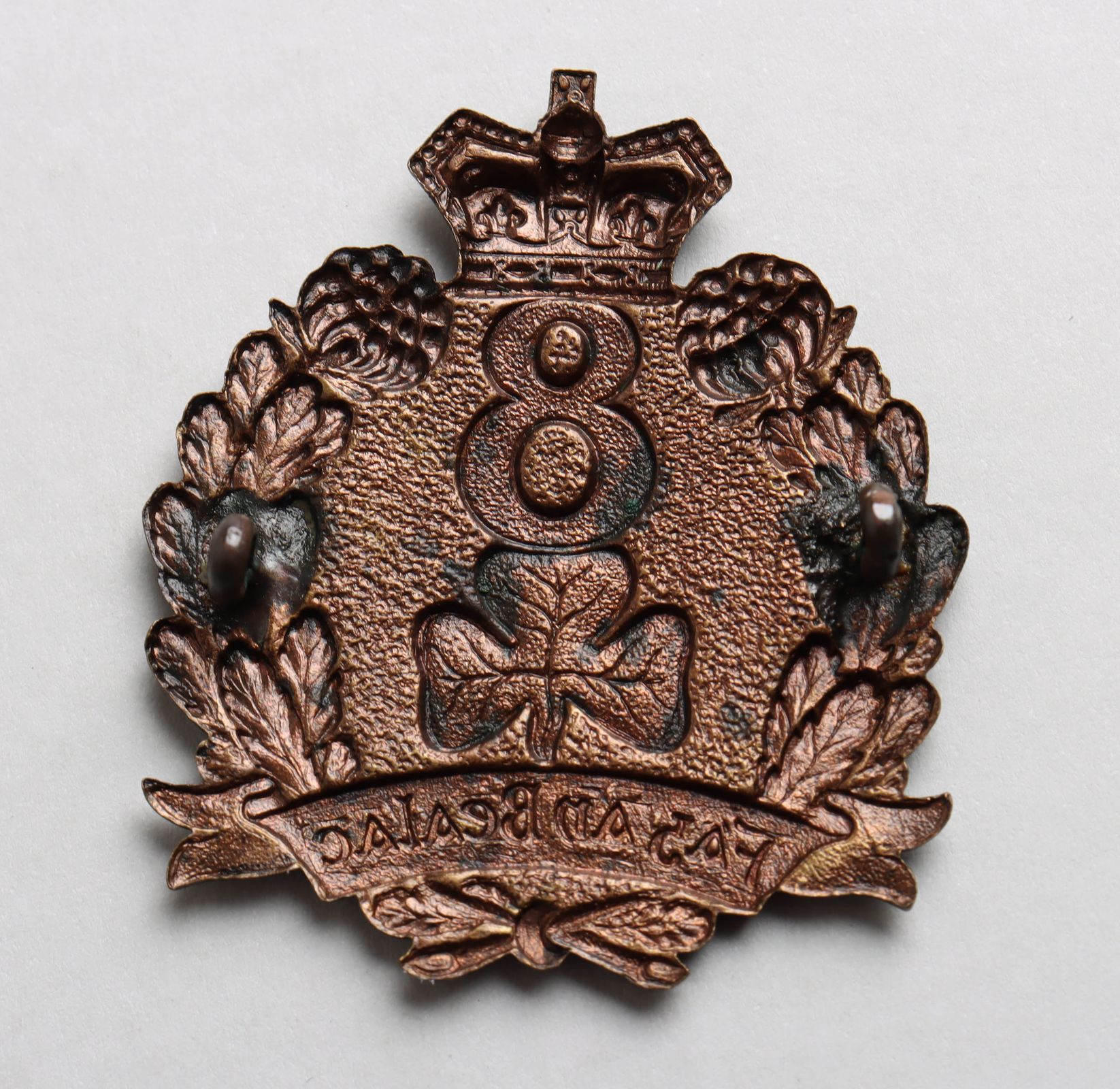 New South Wales: 1899-1903 Pre-Federation 8th (Union Volunteer) Infantry Regiment (Irish Rifles) hat badge. In oxidised bronze. EF. Glyde: 048. Scarce