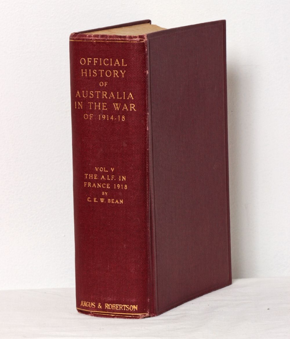 Australia: Official History of Australia in the War of 1914-18 Vol. V 'The AIF in France 1918:'. By CEW Bean. 1941 8th edition. 825 pgs, H/C VGC, pgs minor tones, o/a VGC.
